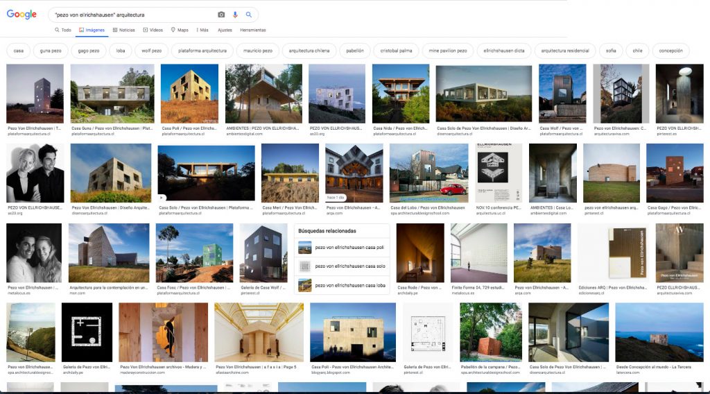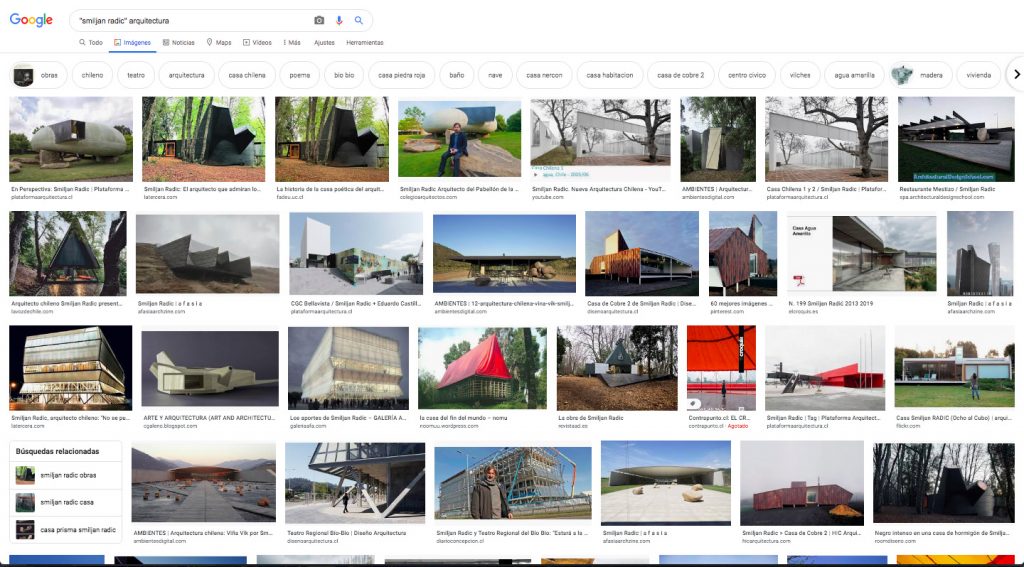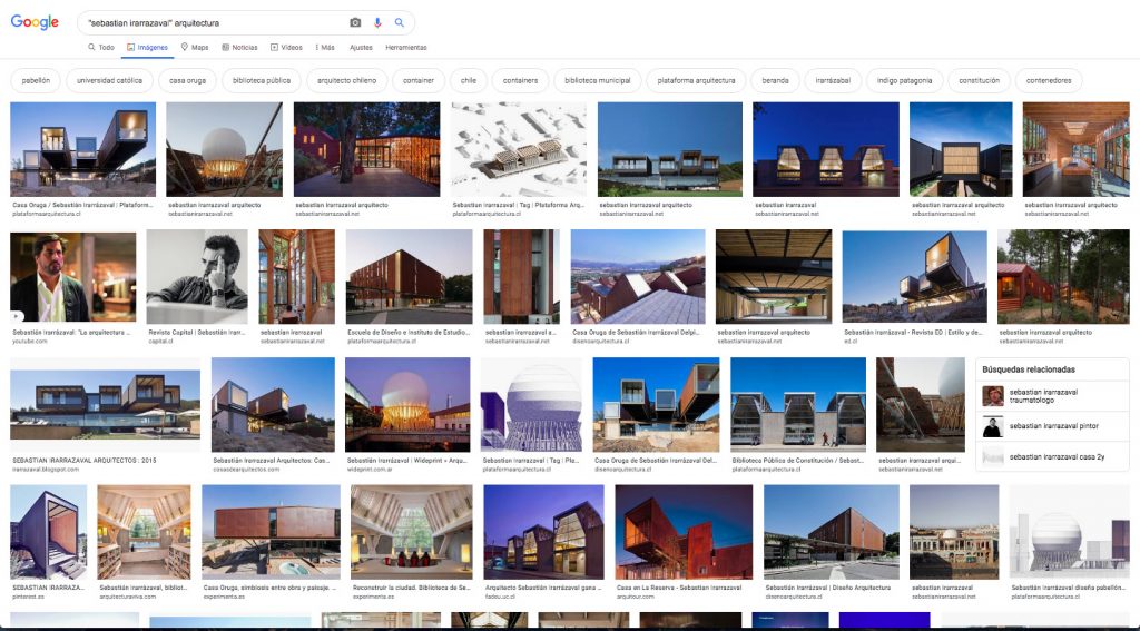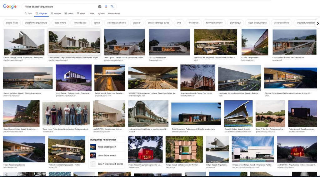 El set de datos para el entrenamiento del modelo, corresponde a 1.609 imágenes, seleccionadas de los resultados de las siguientes búsquedas de imágenes en Google. De cada una de estas búsquedas, se seleccionaron las primeras 200 a 300 fotografías de obras de arquitectura,