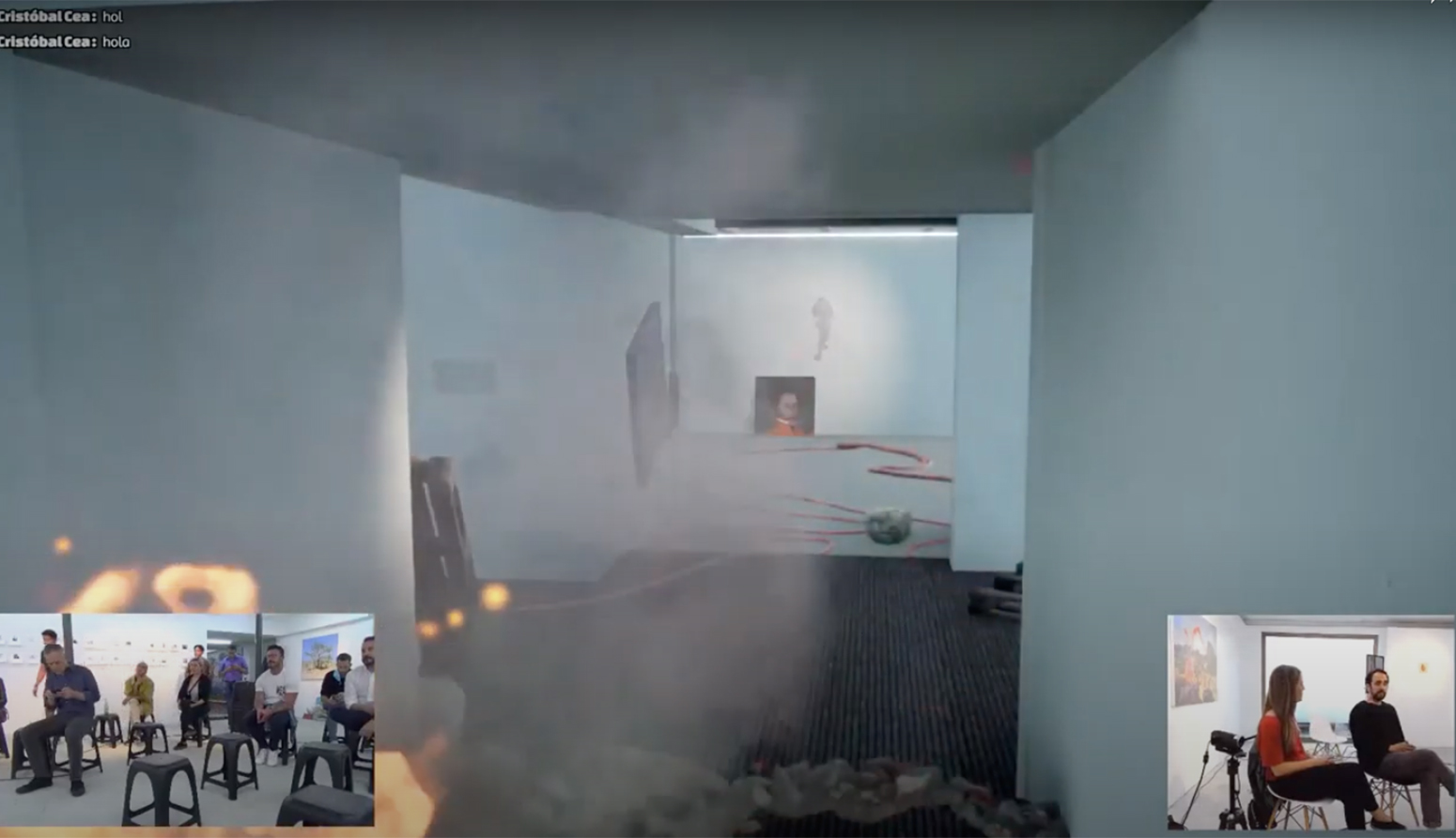La muestra -compuesta por pinturas tradicionales, dibujos, cables y una copia digital de la galería, refiere por cierto a experiencias personales y colectivas acontecidas durante el último tiempo: la fragilidad del cuerpo individual, la fragmentación del cuerpo social y la difícil tarea de abandonar un marco de pensamiento dualista y binario para hacer las paces con un modo de vivir híbrido, tecnológicamente mestizo, capaz de aceptar las diferencias entre lo espiritual y lo corporal, lo virtual y lo material.