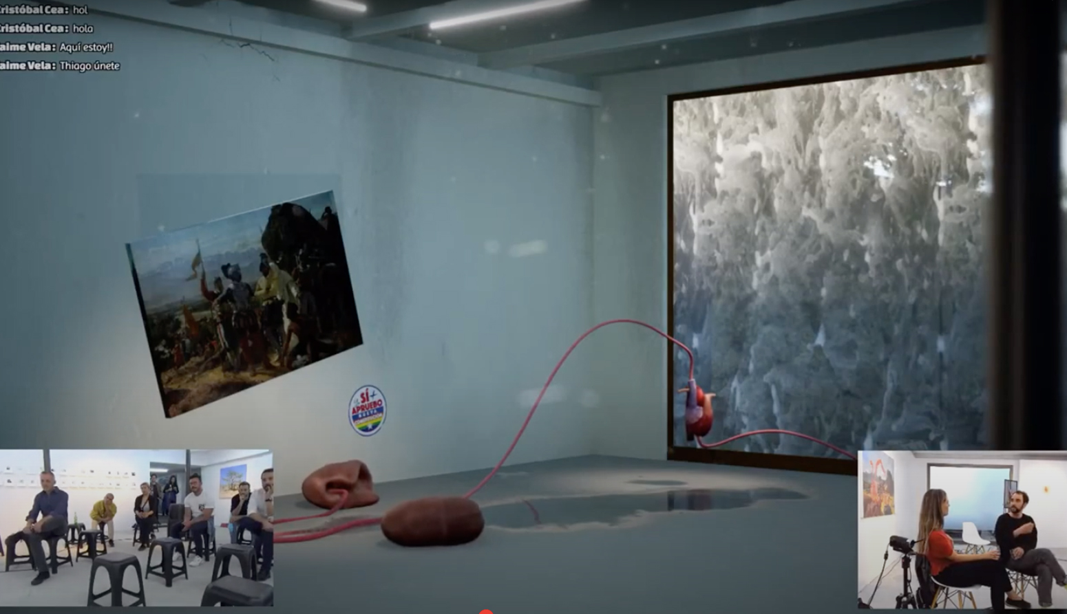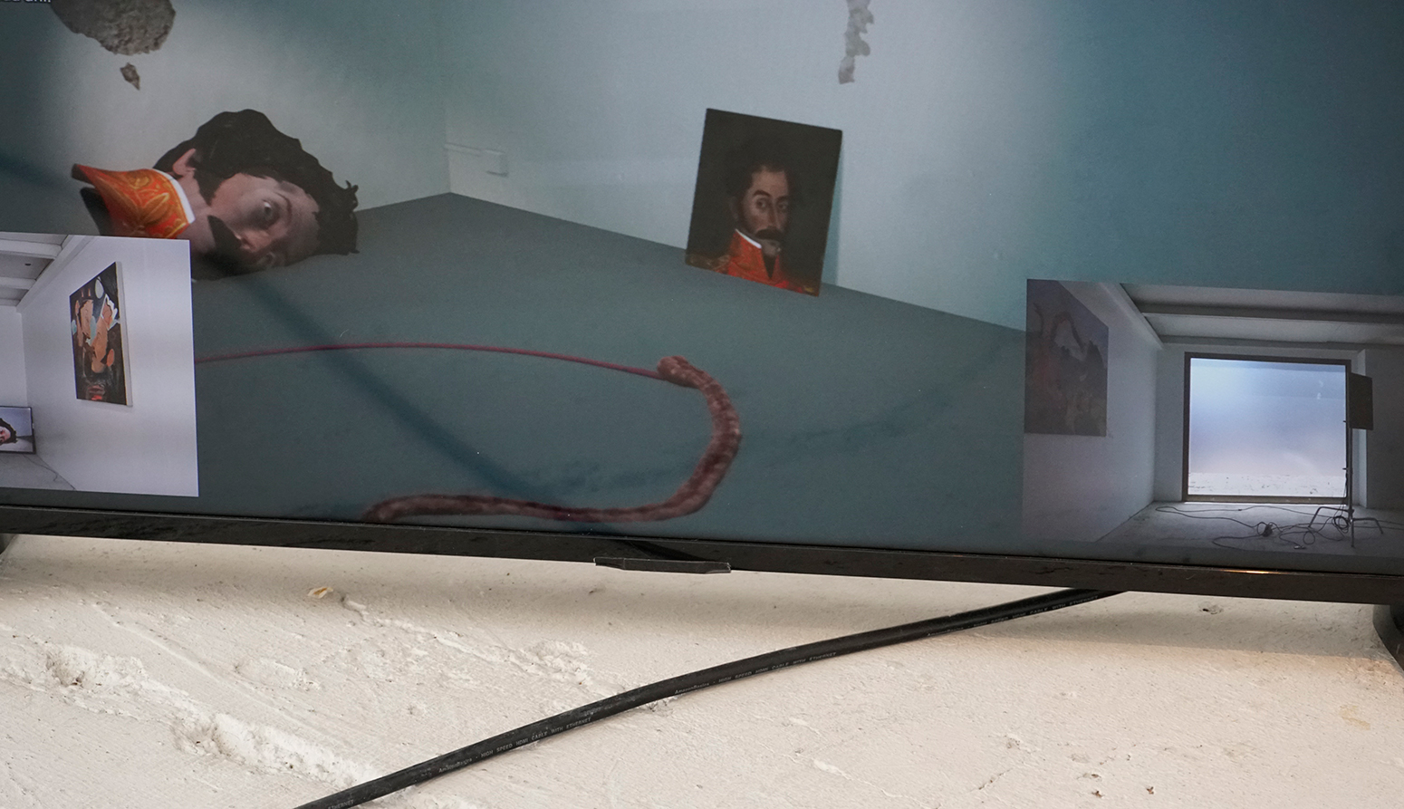 Los órganos de un ser humano anónimo yacen dispersos en una copia virtual del espacio expositivo, ahora devenido en contenedor, acompañados de los restos inmortales de Simón Bolivar y otras figuras difíciles de resolver.